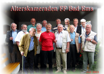 Sicher ist, das im Jahr 1922 anlässlich des 50jährigen Bestehens der Freiwilligen Feuerwehr Bad Ems bereits eine Alterskameradschaft bestanden haben muss. Der Hessen-Nassauische-Feuerwehrverband, dem die Wehr Bad Ems damals angehörte, hatte die Pflege der Alterkameradschaft in ihren Statuten festgeschrieben.