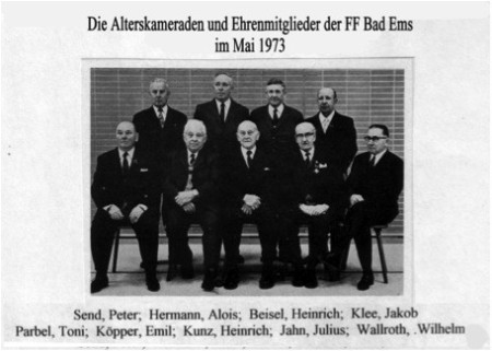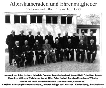 Die Wertschätzung und Achtung der Alterskameraden in der Wehr Bad Ems und den damaligen Bezeichnungen wie "Ehrenmitglied" und "Ehrenkommandant" zeigen den damaligen Stellenwert.